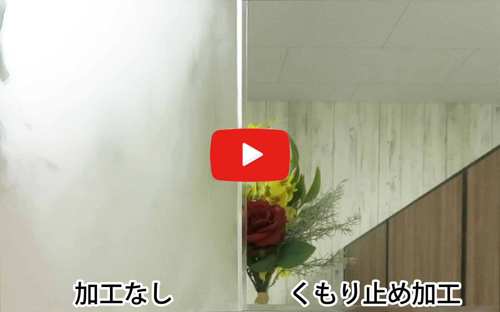 特殊機能フィルムを鏡の表面に貼る方法で、当店「かがみどっとねっと」のオーダーミラーの洗面用くもり止め加工に採用しています。